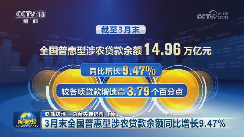 3月末全国普惠型涉农贷款余额同比增长9.47%