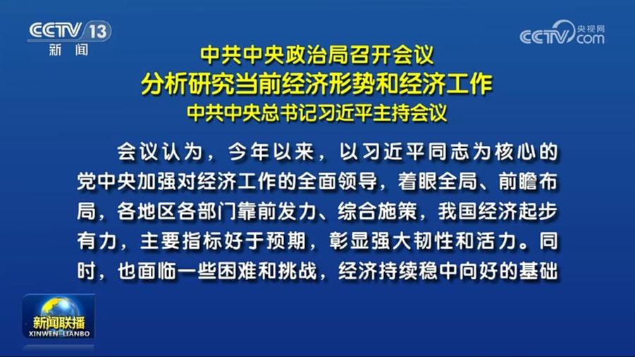 1.中共中央政治局召开会议 分析研究当前经济形势和经济工作 中共中央总书记习近平主持会议;